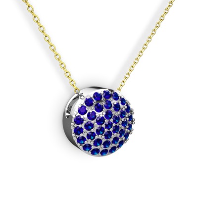 Lab safir 14 ayar beyaz altın kolye (40 cm altın rolo zincir)