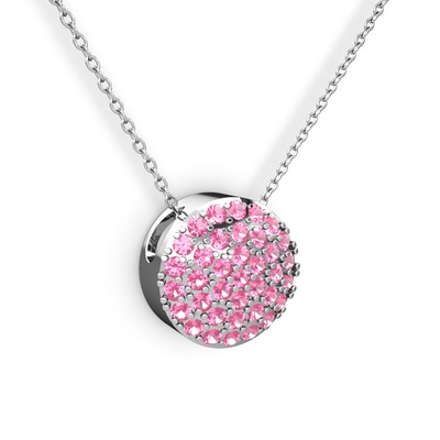 Pembe kuvars 14 ayar beyaz altın kolye (40 cm beyaz altın rolo zincir)