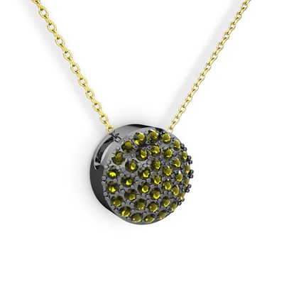 Peridot 925 ayar siyah rodyum kaplama gümüş kolye (40 cm altın rolo zincir)