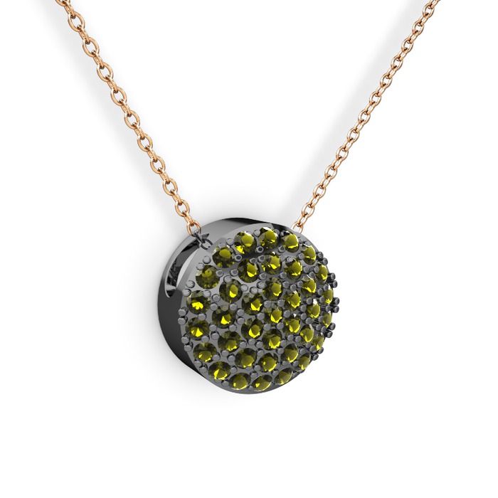 Peridot 925 ayar siyah rodyum kaplama gümüş kolye (40 cm rose altın rolo zincir)