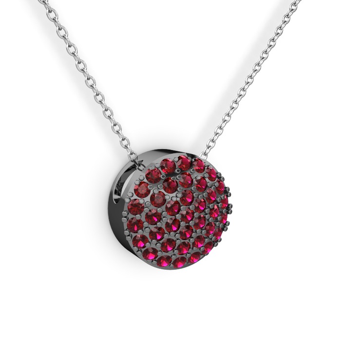 Rodolit garnet 925 ayar siyah rodyum kaplama gümüş kolye (40 cm beyaz altın rolo zincir)