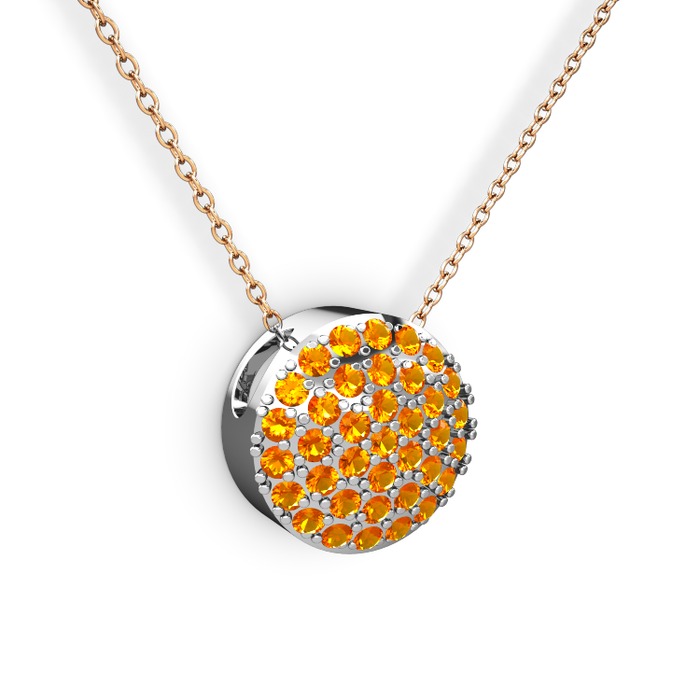 Sitrin 18 ayar beyaz altın kolye (40 cm rose altın rolo zincir)