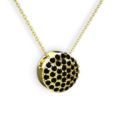 Siyah zirkon 925 ayar altın kaplama gümüş kolye (40 cm gümüş rolo zincir)