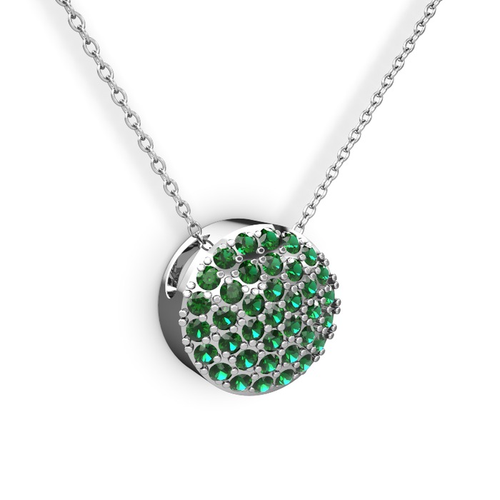 Yeşil kuvars 8 ayar beyaz altın kolye (40 cm beyaz altın rolo zincir)