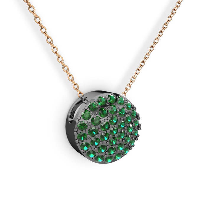 Yeşil kuvars 925 ayar siyah rodyum kaplama gümüş kolye (40 cm rose altın rolo zincir)