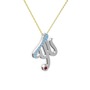 Akuamarin ve kök yakut 18 ayar beyaz altın kolye (40 cm gümüş rolo zincir)