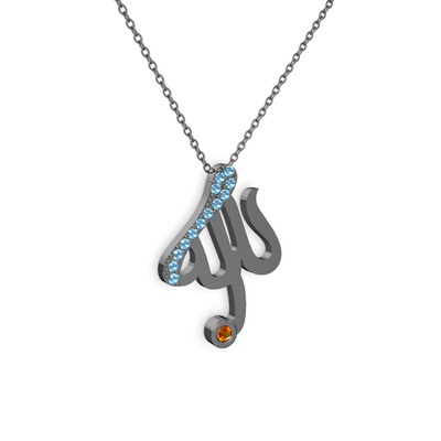 Akuamarin ve sitrin 925 ayar siyah rodyum kaplama gümüş kolye (40 cm gümüş rolo zincir)