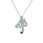 Akuamarin ve siyah zirkon 14 ayar beyaz altın kolye (40 cm gümüş rolo zincir)