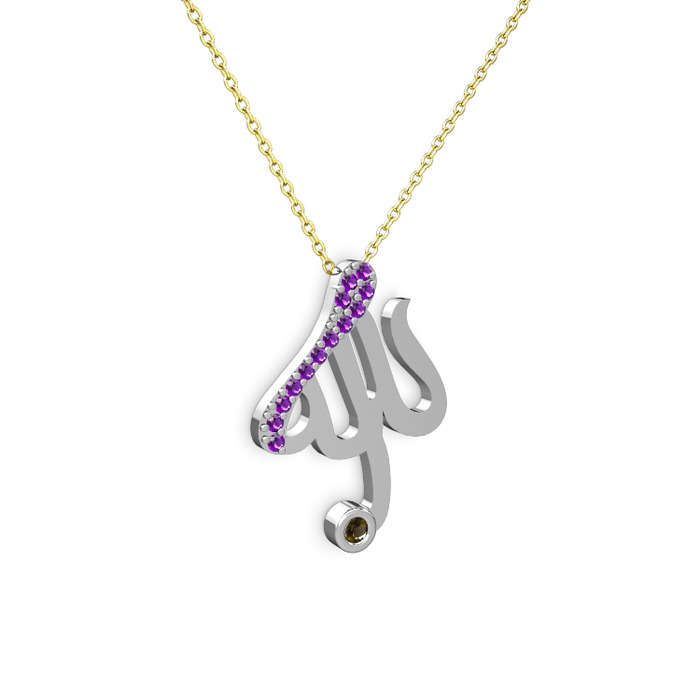 Ametist ve dumanlı kuvars 8 ayar beyaz altın kolye (40 cm altın rolo zincir)