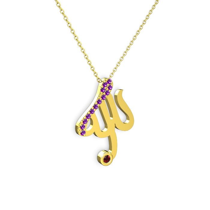 Ametist ve garnet 18 ayar altın kolye (40 cm gümüş rolo zincir)