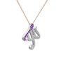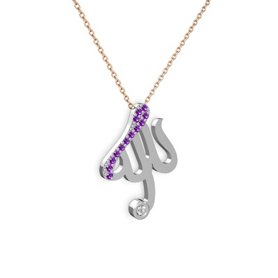 Ametist ve pırlanta 14 ayar beyaz altın kolye (0.036 karat, 40 cm gümüş rolo zincir)