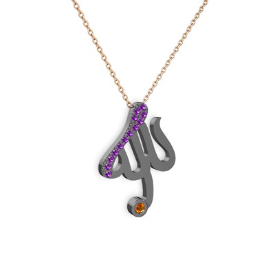 Ametist ve sitrin 925 ayar siyah rodyum kaplama gümüş kolye (40 cm rose altın rolo zincir)