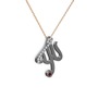 Beyaz zirkon ve garnet 925 ayar siyah rodyum kaplama gümüş kolye (40 cm rose altın rolo zincir)