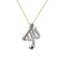 Dumanlı kuvars ve lab safir 18 ayar beyaz altın kolye (40 cm altın rolo zincir)
