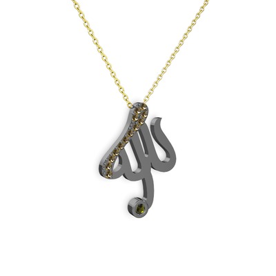 Dumanlı kuvars ve peridot 925 ayar siyah rodyum kaplama gümüş kolye (40 cm altın rolo zincir)