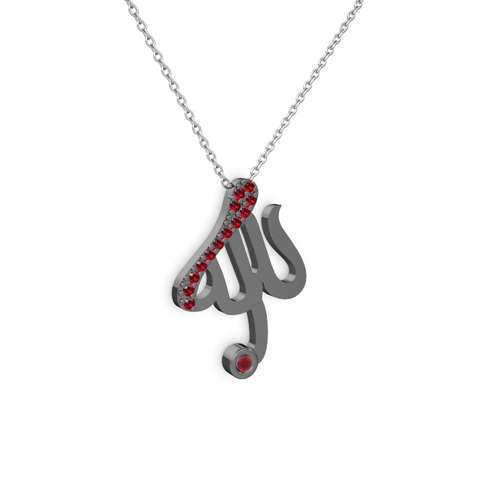 Garnet ve kök yakut 925 ayar siyah rodyum kaplama gümüş kolye (40 cm beyaz altın rolo zincir)