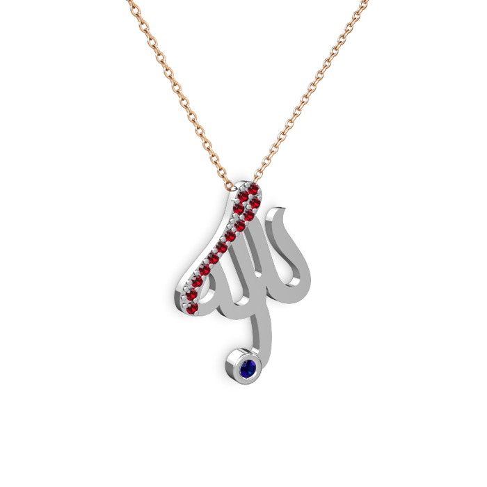 Garnet ve lab safir 8 ayar beyaz altın kolye (40 cm gümüş rolo zincir)