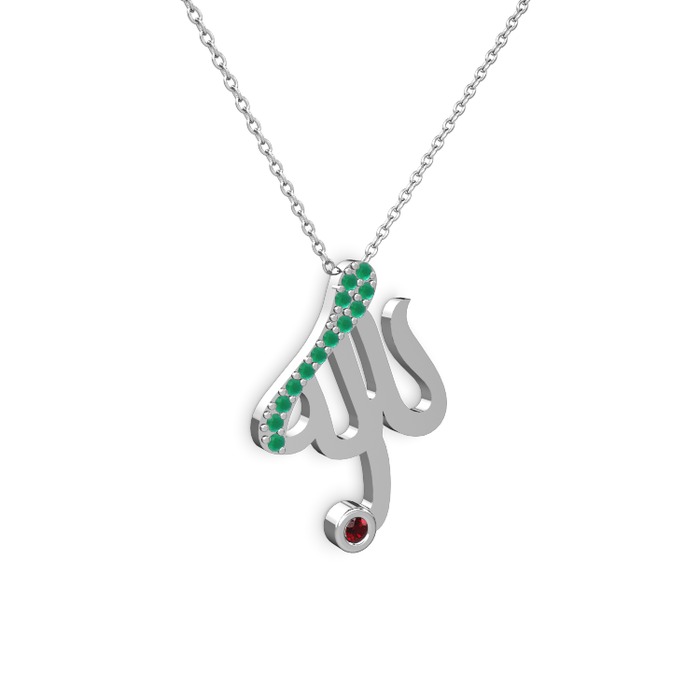 Kök zümrüt ve garnet 14 ayar beyaz altın kolye (40 cm beyaz altın rolo zincir)
