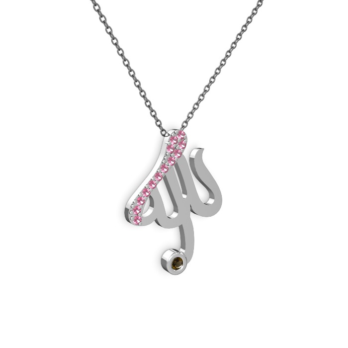 Pembe kuvars ve dumanlı kuvars 8 ayar beyaz altın kolye (40 cm gümüş rolo zincir)