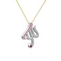 Pembe kuvars ve kök yakut 8 ayar beyaz altın kolye (40 cm gümüş rolo zincir)