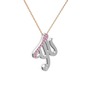 Pembe kuvars ve pırlanta 14 ayar beyaz altın kolye (0.036 karat, 40 cm rose altın rolo zincir)