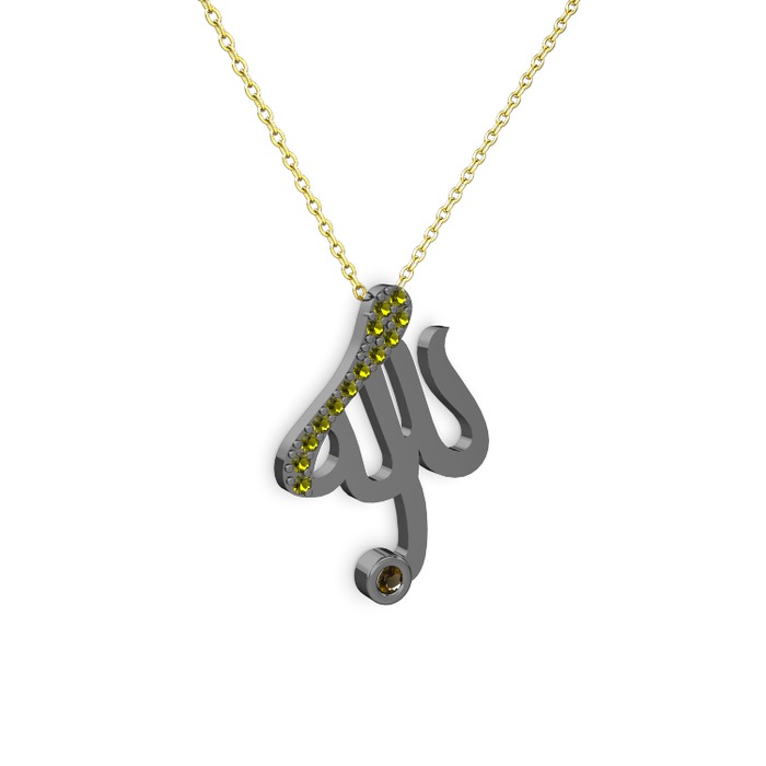 Peridot ve dumanlı kuvars 925 ayar siyah rodyum kaplama gümüş kolye (40 cm gümüş rolo zincir)