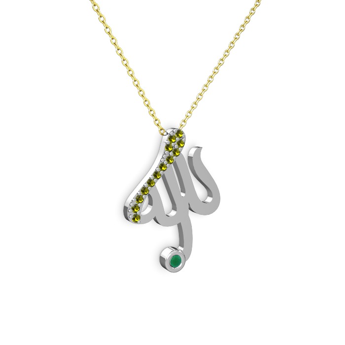 Peridot ve kök zümrüt 925 ayar gümüş kolye (40 cm gümüş rolo zincir)