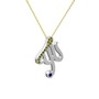 Peridot ve lab safir 14 ayar beyaz altın kolye (40 cm altın rolo zincir)