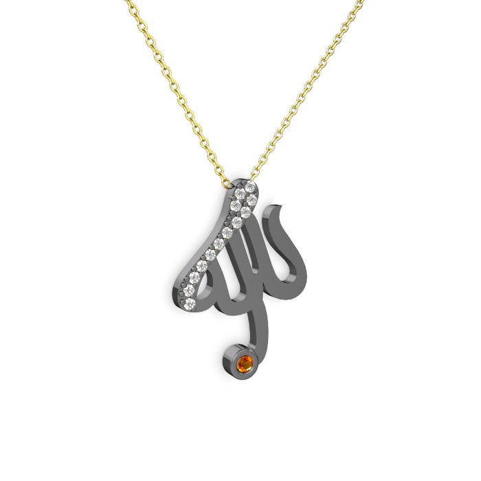 Pırlanta ve sitrin 925 ayar siyah rodyum kaplama gümüş kolye (0.143 karat, 40 cm gümüş rolo zincir)