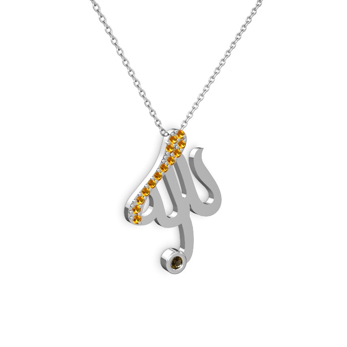 Sitrin ve dumanlı kuvars 8 ayar beyaz altın kolye (40 cm beyaz altın rolo zincir)
