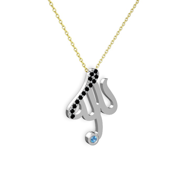 Siyah zirkon ve akuamarin 14 ayar beyaz altın kolye (40 cm altın rolo zincir)