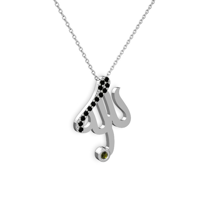 Siyah zirkon ve peridot 8 ayar beyaz altın kolye (40 cm beyaz altın rolo zincir)