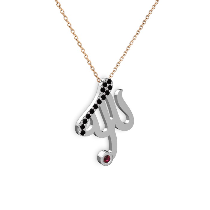 Siyah zirkon ve rodolit garnet 925 ayar gümüş kolye (40 cm rose altın rolo zincir)