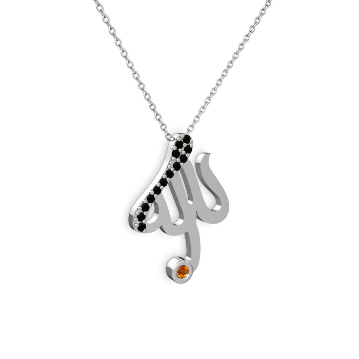 Siyah zirkon ve sitrin 14 ayar beyaz altın kolye (40 cm gümüş rolo zincir)