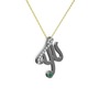 Swarovski ve kök zümrüt 925 ayar siyah rodyum kaplama gümüş kolye (40 cm altın rolo zincir)