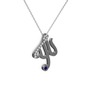 Swarovski ve lab safir 925 ayar siyah rodyum kaplama gümüş kolye (40 cm beyaz altın rolo zincir)