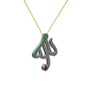 Yeşil kuvars ve garnet 925 ayar siyah rodyum kaplama gümüş kolye (40 cm altın rolo zincir)
