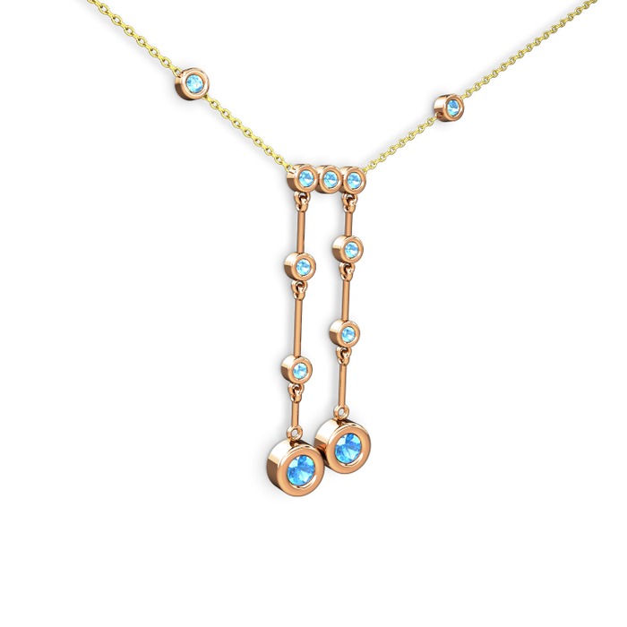 Akuamarin 14 ayar rose altın kolye (40 cm altın rolo zincir)