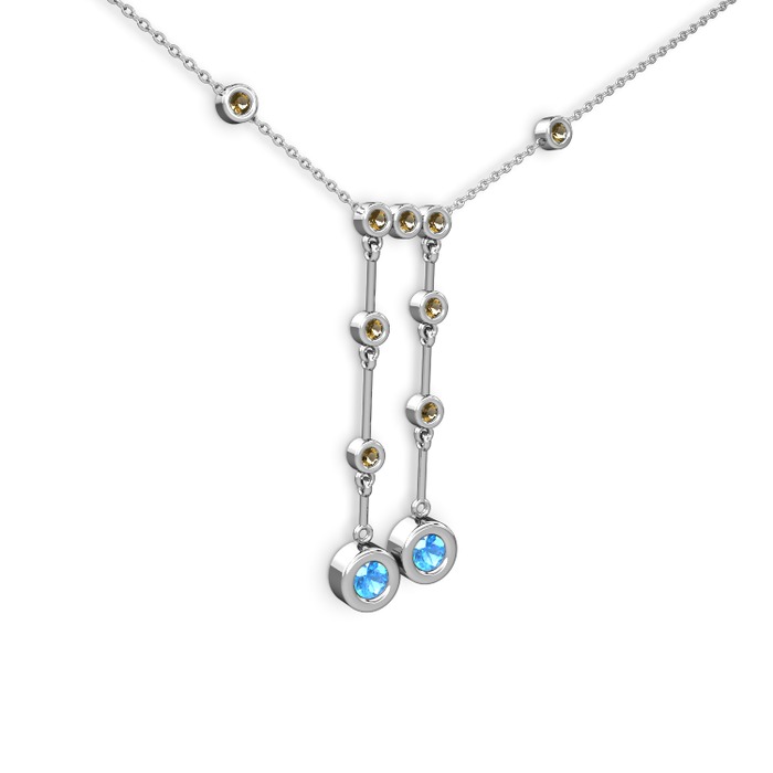 Akuamarin ve dumanlı kuvars 14 ayar beyaz altın kolye (40 cm gümüş rolo zincir)