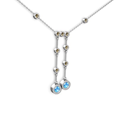 Akuamarin ve dumanlı kuvars 18 ayar beyaz altın kolye (40 cm beyaz altın rolo zincir)