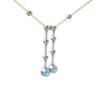 Akuamarin ve dumanlı kuvars 925 ayar gümüş kolye (40 cm gümüş rolo zincir)