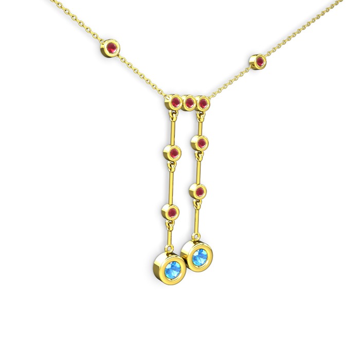 Akuamarin ve kök yakut 14 ayar altın kolye (40 cm altın rolo zincir)