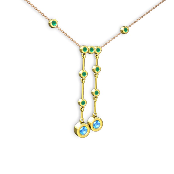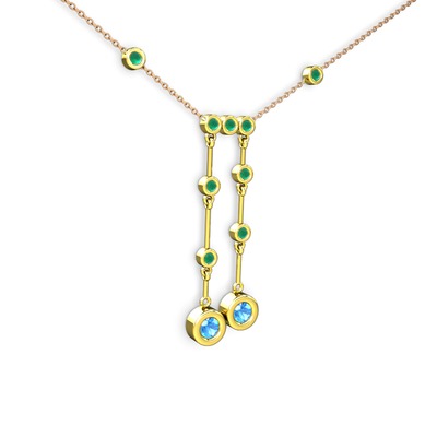 Akuamarin ve kök zümrüt 925 ayar altın kaplama gümüş kolye (40 cm rose altın rolo zincir)