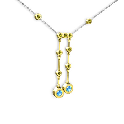 Akuamarin ve peridot 925 ayar altın kaplama gümüş kolye (40 cm beyaz altın rolo zincir)