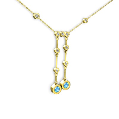 Akuamarin ve pırlanta 14 ayar altın kolye (0.324 karat, 40 cm altın rolo zincir)