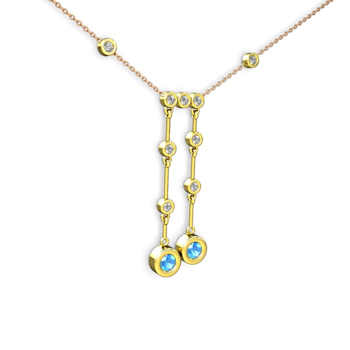 Akuamarin ve pırlanta 14 ayar altın kolye (0.324 karat, 40 cm rose altın rolo zincir)