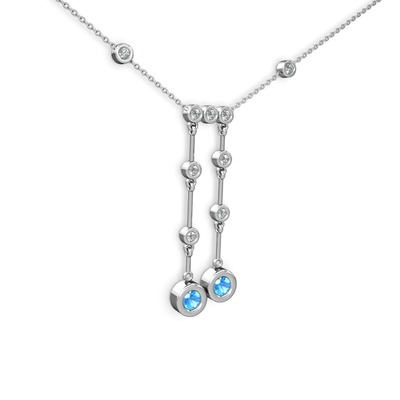 Akuamarin ve pırlanta 18 ayar beyaz altın kolye (0.324 karat, 40 cm beyaz altın rolo zincir)