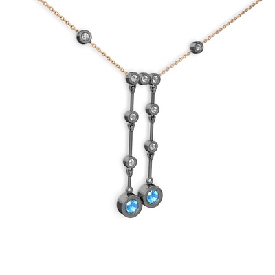 Akuamarin ve pırlanta 925 ayar siyah rodyum kaplama gümüş kolye (0.324 karat, 40 cm rose altın rolo zincir)