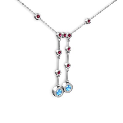 Akuamarin ve rodolit garnet 925 ayar gümüş kolye (40 cm gümüş rolo zincir)