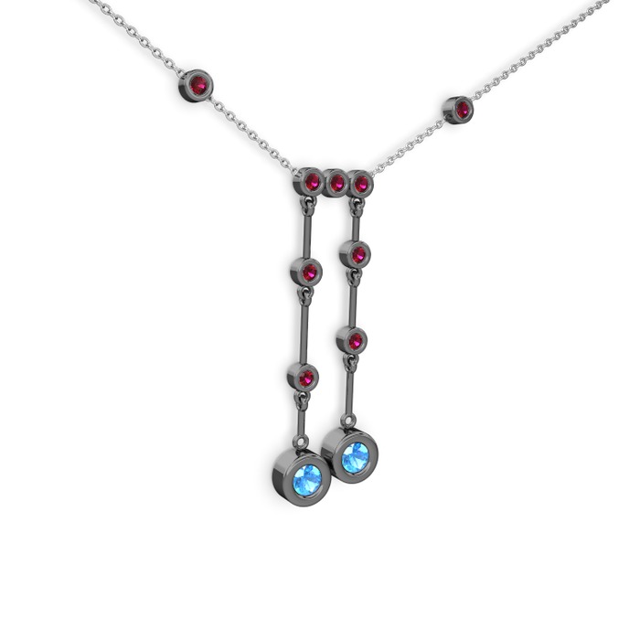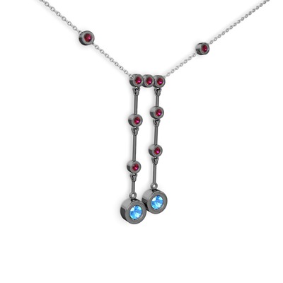 Akuamarin ve rodolit garnet 925 ayar siyah rodyum kaplama gümüş kolye (40 cm beyaz altın rolo zincir)